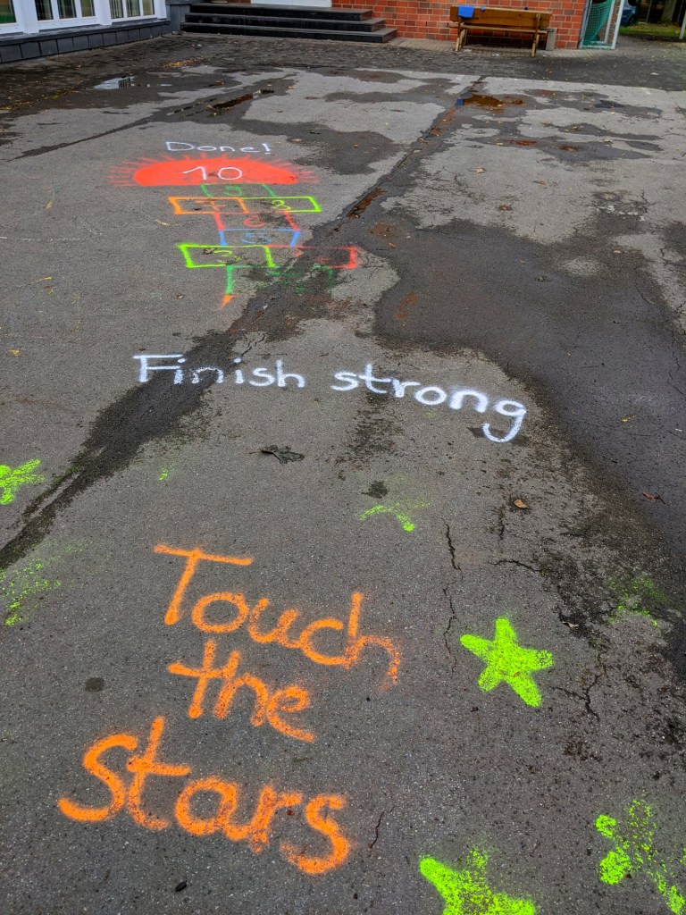 Bewegung nimmt an der Lindenschule einen großen Stellenwert ein. Durch die Digitalisierung verbringen einige Kinder immer mehr Zeit mit dem Tablet oder anderen digitalen Geräten. Dadurch fehlt häufig die Zeit für aktives Spiel. Um einen Impuls zur Bewegung zu geben, haben wir uns entschieden, die Schulhöfe beider Standorte zu besprühen. So wollten wir bei den Kindern die Lust auf Bewegung wecken.