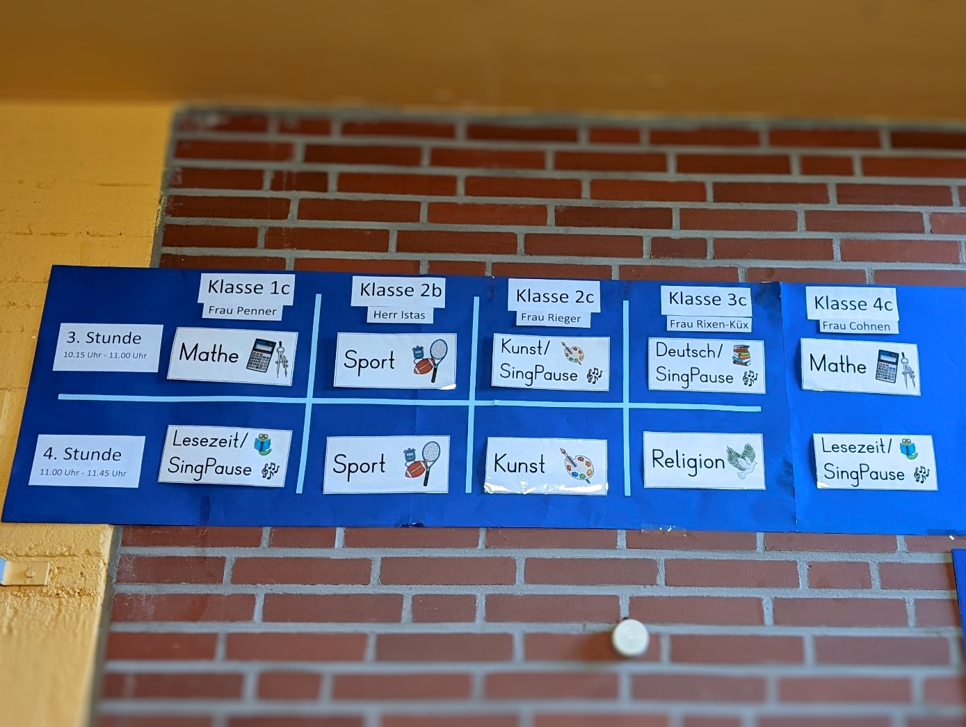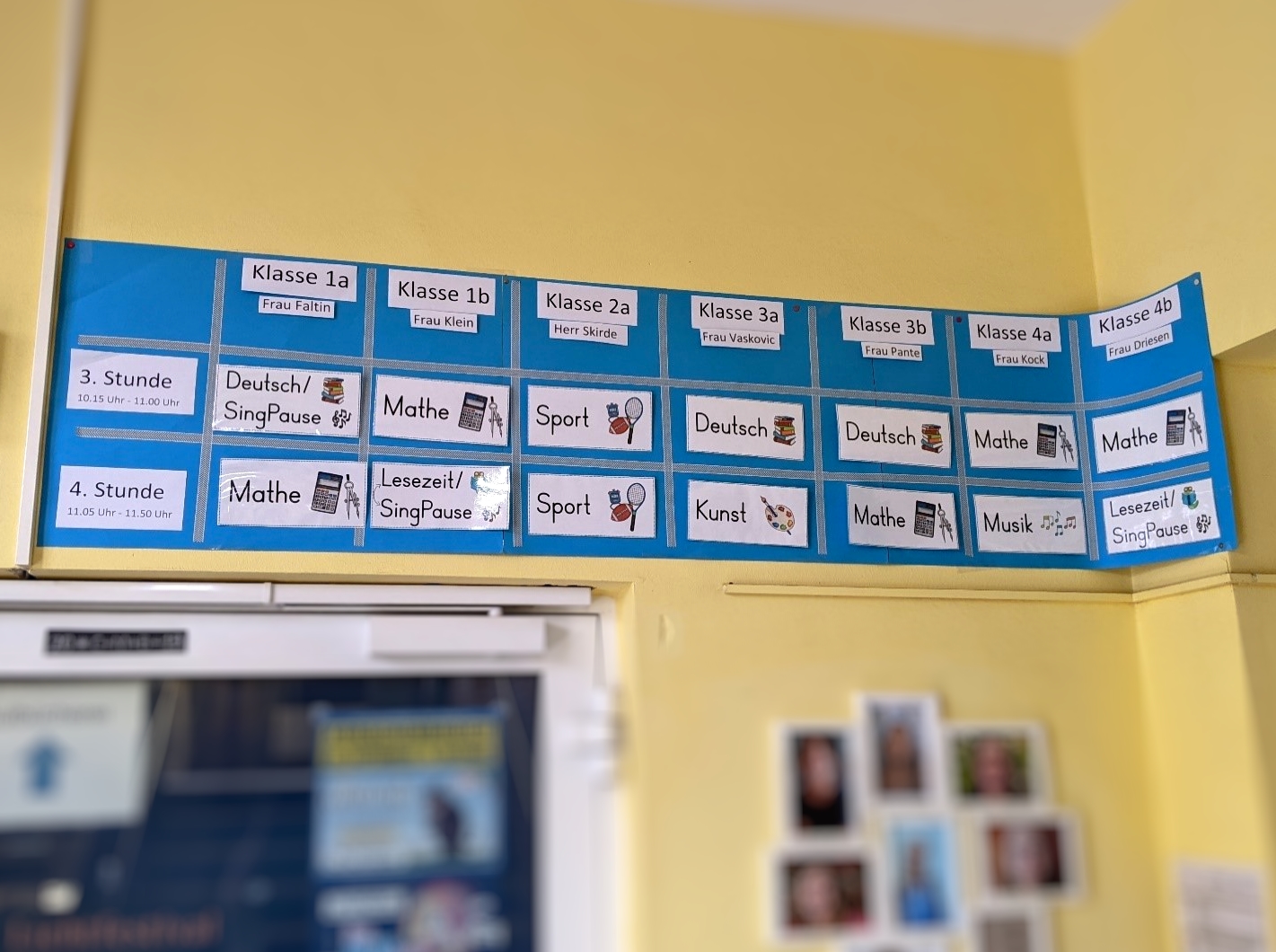 Der Tag der offenen Tür findet jährlich meist im September, kurz vor dem Anmeldezeitraum, statt. An diesem Tag zeigen unsere Kinder voller Freude wie und was sie im Unterricht lernen. In unseren beiden Schulgebäuden hängen wir zur besseren Orientierung für unsere interessierten Besucher Stundenpläne auf und stellen Wegweiser auf. Jedes Jahr freuen wir uns sehr über das rege Interesse.